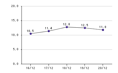 | Net income ratio | 10.5 | 11.4 | 12.8 | 12.5 | 11.8 |
